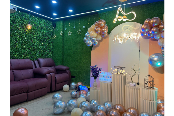₹1899 for 4 or less people including taxes. *Additional 350/Person if more than 4. *Additional 750/- Rs for Basic Decoration. *Gift, Cake can be added while booking slot. *Food, Beverages, can be ordered from menu.